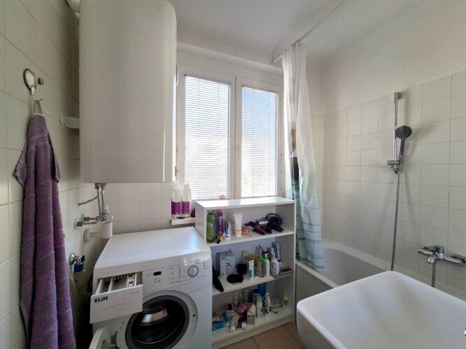 Unsere Wohnung (83 qm) liegt zentral aber in absoluter Ruhelage. Sie befindet sich im 2. Stock eines Mehrparteienhauses und besteht aus einer gemütlichen Wohnküche (mit Geschirrspüler), Bad (mit Fenster und Waschmaschine), separatem WC und drei getrennt begehbaren Zimmern. Ebenso gehört zur Wohnung ein großes Kellerabteil, ein Fahrradabstellplatz im Keller und ein gratis Parkplatz.
